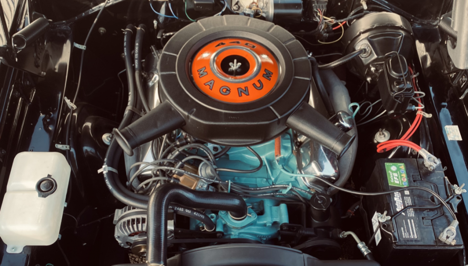 🇬🇧 1968 Dodge Coronet RT – 2200 miles body up restoration, beautiful factory black, factory red vinyl interior. 67 date code 440 ci engine 4 barrel, factory intake & manifolds, factory dual snokel air cleaner & chrome valve cover, power steering, power front disc brake. 727 torqueflite automatic transmission.